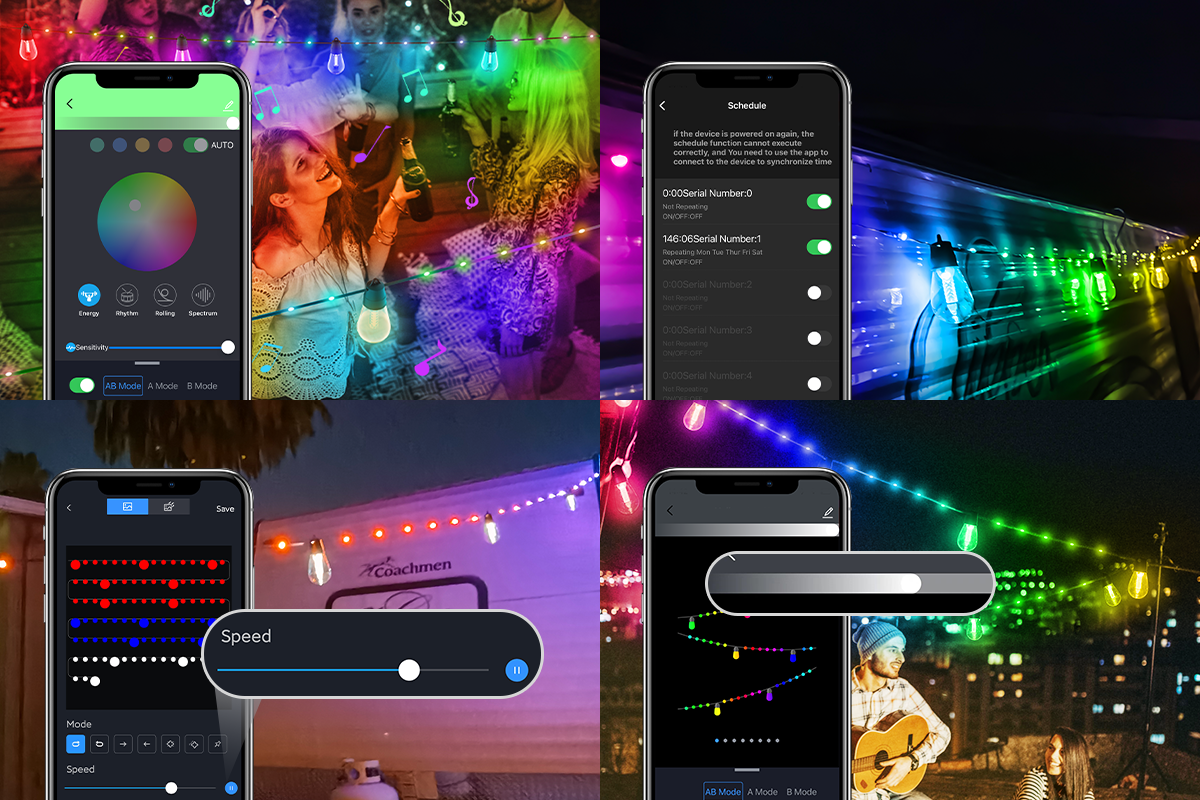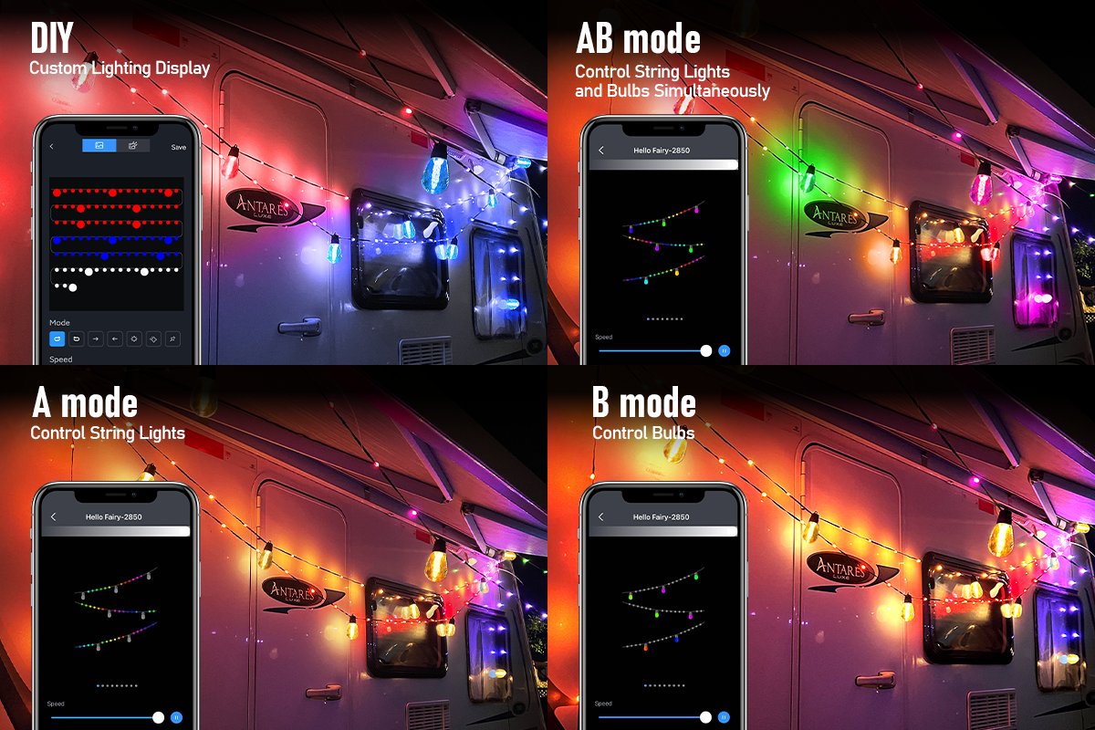 Smart App Control - Via the Hello Fairy app, you can customize lights color or modes, set up 20 x 20 preset modes, change lighting speed or pause the lights, dim brightness, set up music mode, set 16millions colors etc, so that you can customize the color and light mode
