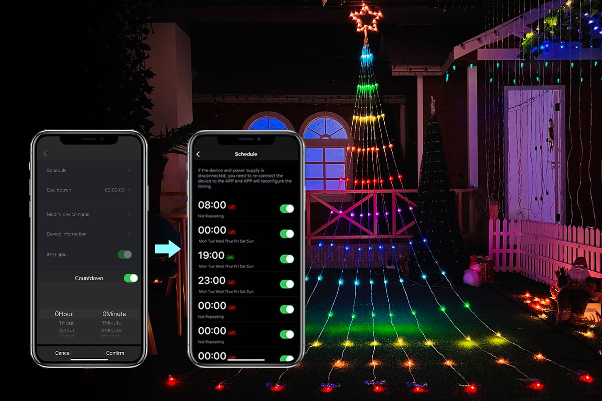 App Control Function - Speed adjustable, paused effect and 0%-100% dimmable Christmas tree lights. Set brighter and fast flash outdoor led lights to accent your Christmas party.