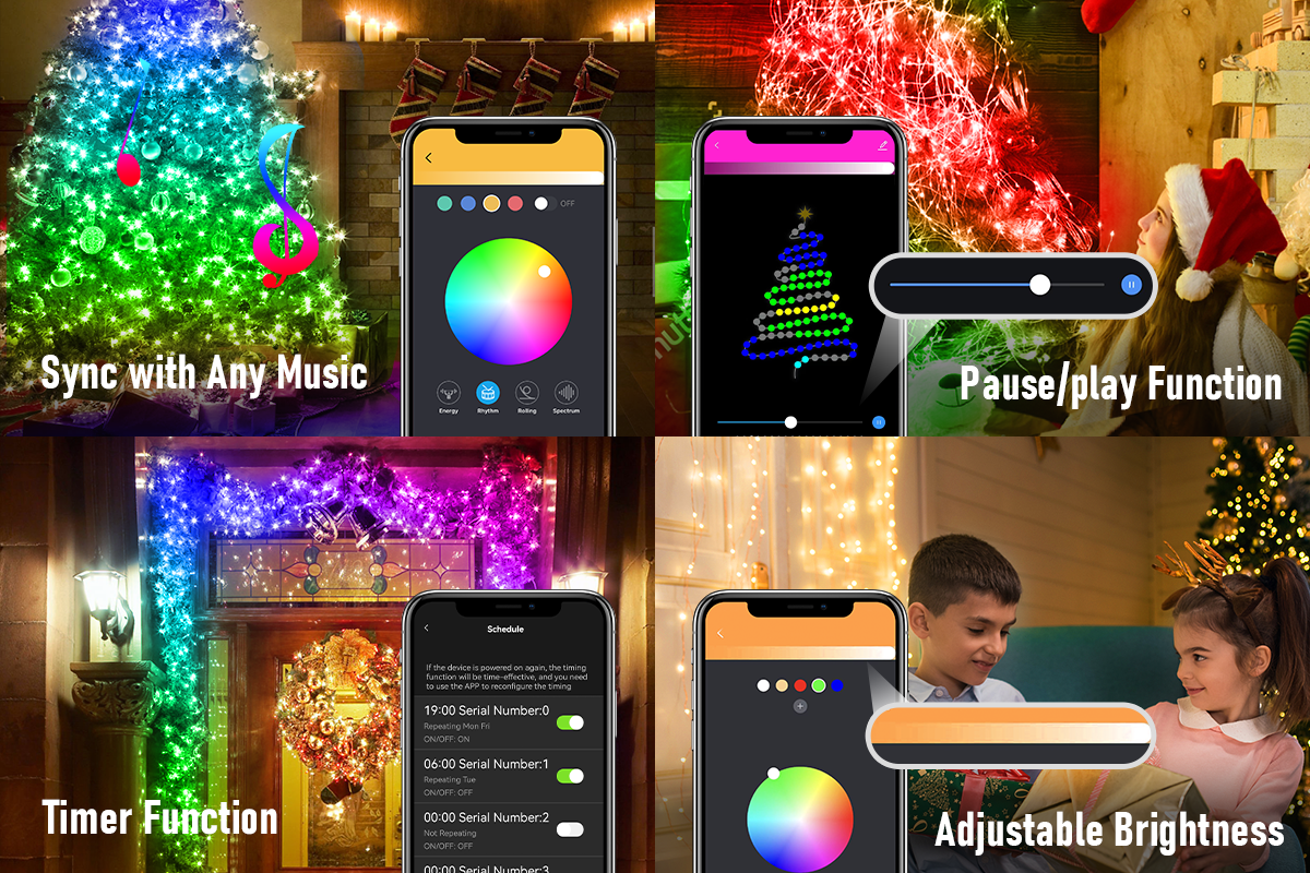 Connect via Wifi & App Control - Via Bluetooth connect the LED fairy lights with the Popotan App. Set up preset special modes include rainbow, alternating colors, single color sliding, mulit colors sliding, breathing, flasing. Each mode can be personalized by adjusting the brighteness intensity.