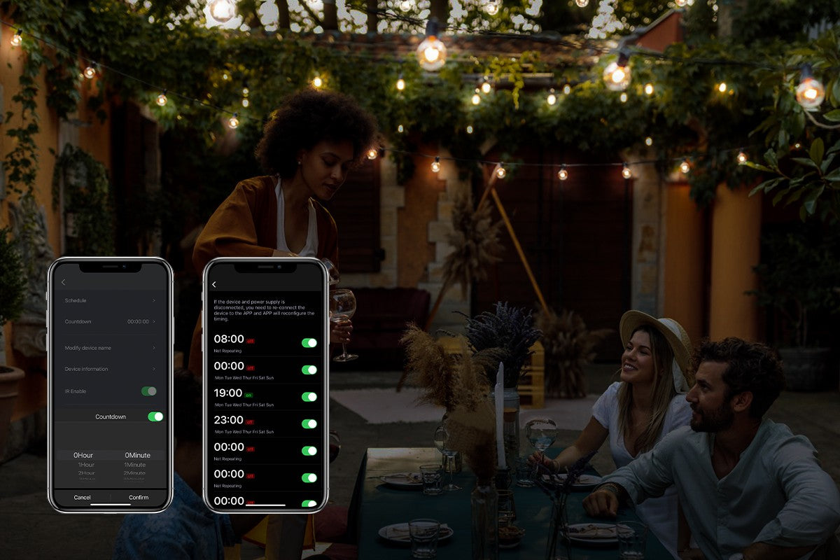 Schedule Function - Automatically turn on or off your outdoor lights at your specified times with customized schedule.
